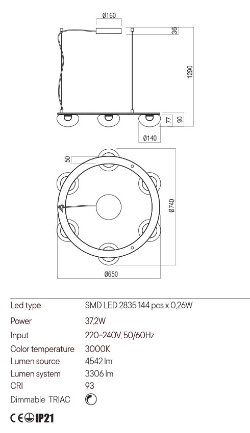 Corp de iluminat cu montaj pe plafon sau suspendat XAMBIT 3000K 105° Alb mat