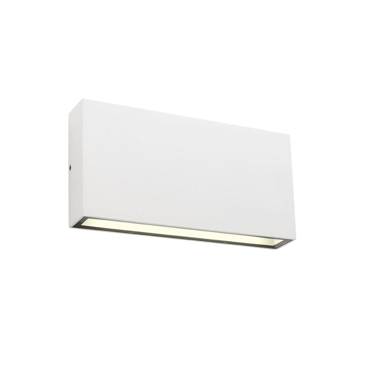 Aplică pentru exterior echipată cu LED-uri SMD cu dispersie luminoasă directă/indirectă. Structură din aluminiu turnat sub presiune vopsit în câmp electrostatic culoare alb mat, dispersoare din sticlă temperată transparentă.