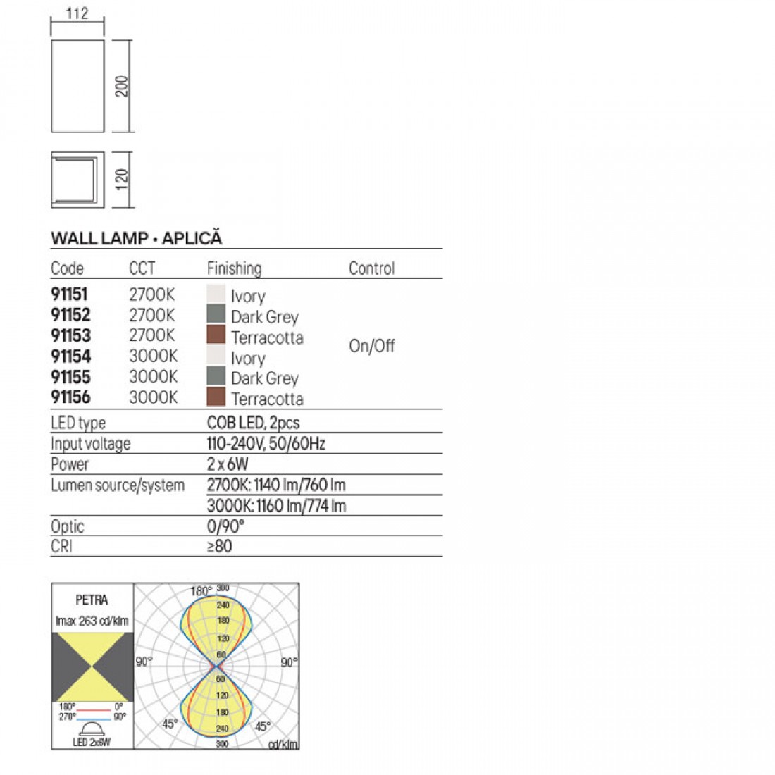 Echipata cu LED-uri SMD 2x6W cu temperatura de culoare alb cald 3000K.