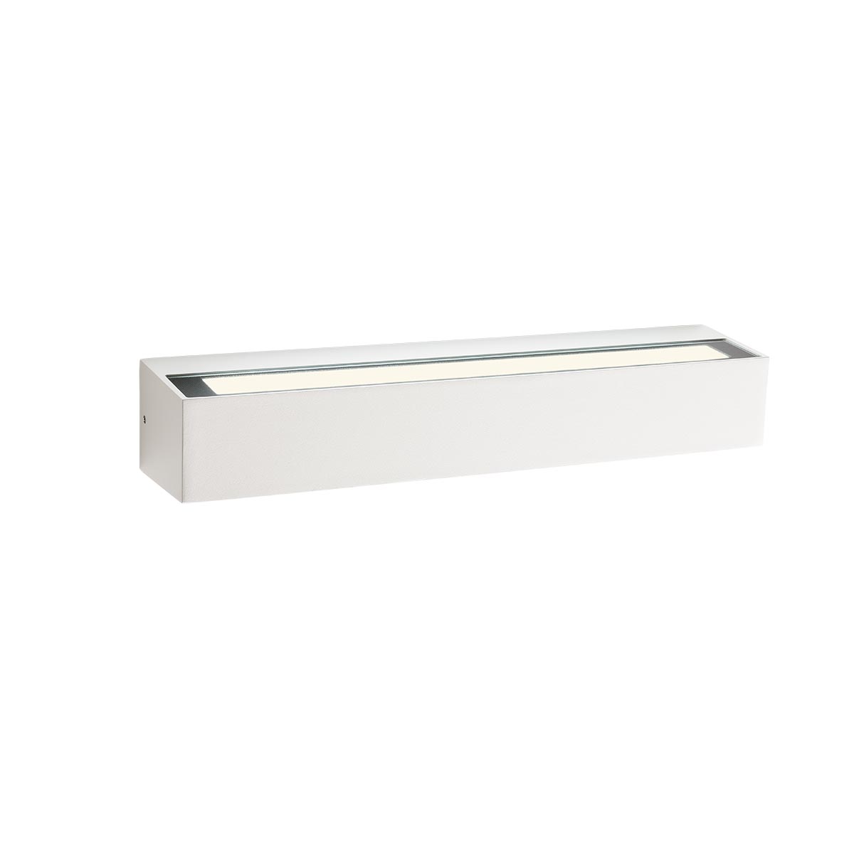 Aplică pentru exterior cu distribuție luminoasă directă/indirectă echipată cu LED-uri SMD. Corp din aluminiu turnat sub presiune vopsit în câmp electrostatic alb mat, reflectoare din policarbonat, dispersoare din sticlă prismatică temperată.