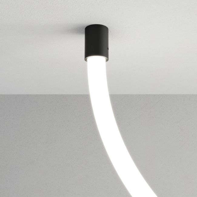 Element pentru fixarea benzilor tubulare cu LED-uri din structurile XLOOP de 18 mm pe tavan sau perete. Realizat din două profile concentrice de aluminiu turnat sub presiune vopsite electrostatic negru cu finisaj sablat.