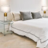 Fotoliu tapițat cu piele italiană albă. Cadru din oțel inoxidabil, finisaj lucios. Confort dovedit.