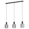 Lampa suspendată GOROSIBA are trei abajururi rotunde din sticlă acoperită cu negru fumuriu și un suport de metal negru. Acest pandantiv completează interioarele moderne și scandinave și oferă un iluminat elegant pentru orice interior, fie în camera de zi sau deasupra mesei din sufragerie. Produsul necesită 3 x becuri E27 care nu sunt incluse.