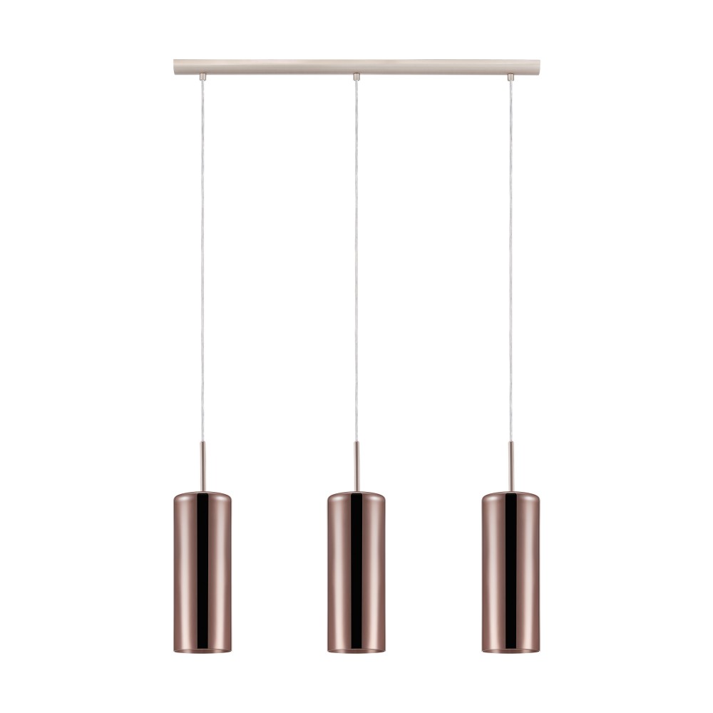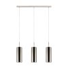 Lampa suspendată SELVINO are trei abajururi cilindrice din sticlă acoperite cu cupru, suspendate de un baldachin din nichel mat. Designul modern se potrivește bine cu aproape orice stil de interior și va crea atmosfera potrivită în orice spațiu, fie în camera de zi sau peste o masă lungă din sufragerie. Becurile nu sunt incluse. Produsul are suporturi de lampă E27 și necesită becuri E27.