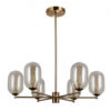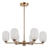 Lustra moderna pentru interior, cu structura din metal finisat bronz antic si abajururi din sticla suflata satinata.