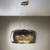 Plafonieră din metal finisaj cromat. Abajur din sticlă strălucitoare. Picături de cristal în interior, stil murano. Dimabil. Telecomandă inclusă. Acest articol include 6 LED G9 de 4,5 W. Dimabil Acest produs folosește un dimmer și o telecomandă cu frecvență radio.
