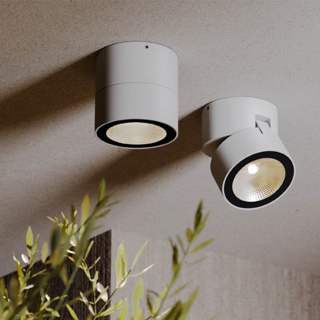 Aplica/Plafoniera orientabila pentru exterior, cu structura din aluminiu turnat sub presiune vopsit alb mat si dispersor din sticlă transparentă, alimentator integrat.
