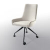 Scaun din metal cu finisaj negru mat. Tapițerie din țesătură 100% poliester, culoare albă, cu cusături decorative gri pe spate.
