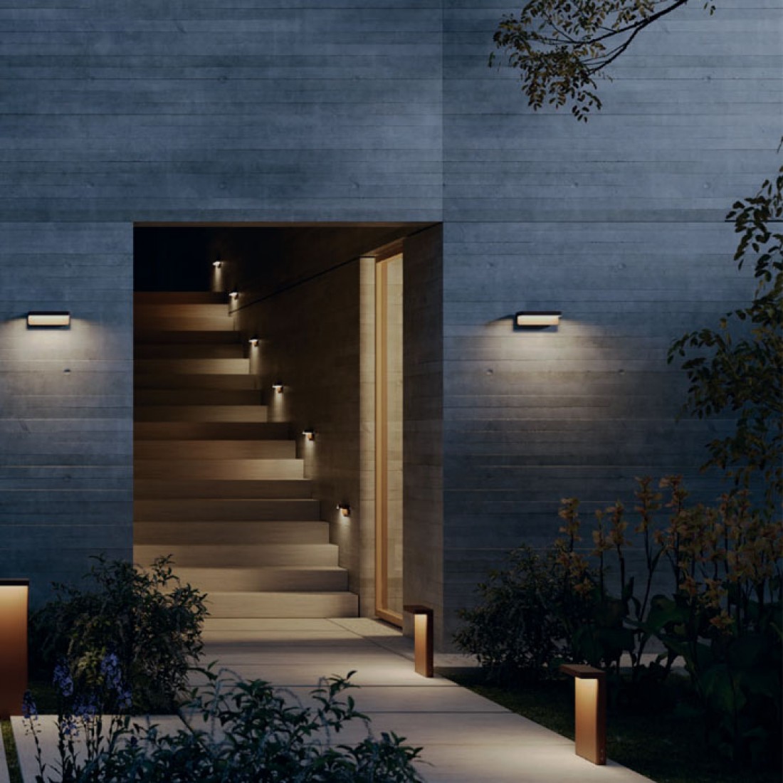 Stalp modern pentru exterior, corp din aluminiu turnat sub presiune, cu tratament de protecție antirugină și anticoroziune prin cataforeză, vopsit în câmp electrostatic corten dispersor din policarbonat satinat.