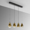 Suspensie de interior cu 3 becuri din metal cu finisaj negru mat. Abajur din sticlă suflată, în nuanță auriu blurat, cu trecere delicată spre transparență. Înălțimea este reglabilă. LED 18W, 1000 lm, 3000K.