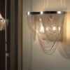 Suspensie cu 12 surse de lumină, din metal, finisaj cromat. Abajur din sticlă formată din bare de cristal curbate de înaltă calitate, culoarea șampaniei. Înălțime reglabilă. prin tensori din oțel. Acest articol include 12 LED G9 6W. Este furnizată cu dibluri basculante, pentru a îmbunătăți fixarea pe tavan.