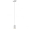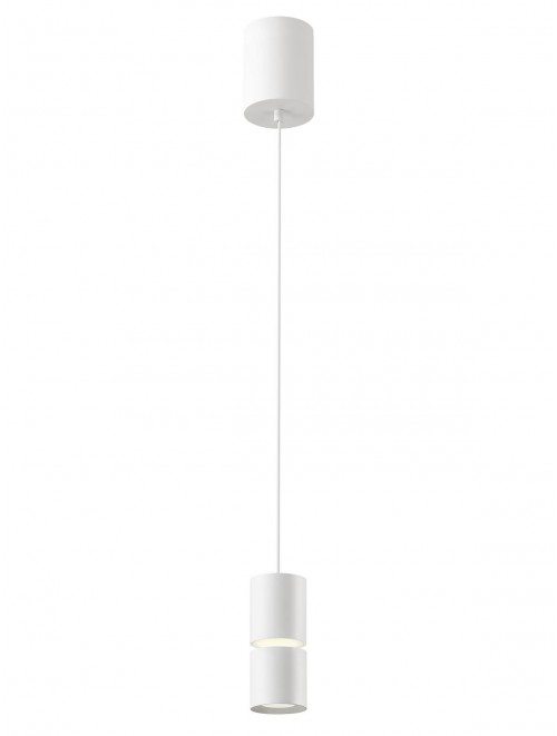 Suspensie pentru interior, cu lumină directă/indirectă, echipată cu un LED COB și LED-uri SMD, structură din aluminiu vopsită alb mat, lentilă din acril în partea de jos și dispersor din PMMA alb opal în partea de sus. Dotată cu mecanism de reglaj opțional pe înălțime, se poate regla continuu lungimea cablului de suspensie între 30 cm și 150 cm, cablul dispare în interiorul rozetei.