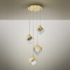 Suspensie cu o sursă de lumină din metal și oțel auriu. Abajur cubic din sticlă texturată. Înălțime reglabilă. Acest articol include un LED G9 6W. Este furnizată cu dibluri basculante, pentru a îmbunătăți fixarea pe tavan.