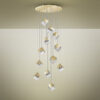 Suspensie rotundă cu 12 surse de lumină, din metal și oțel auriu. Abajur cubic din sticlă texturată. Înălțime reglabilă. Acest articol include 12 LED G9 6W. Este furnizată cu dibluri basculante, pentru a îmbunătăți fixarea pe tavan.