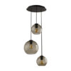 Descoperă suspensia modernă de interior Vetro. Cu o structură din metal vopsit negru și abajururi din sticlă fumurie, lustra Vetro este perfectă pentru interioare moderne, elegante sau vintage.