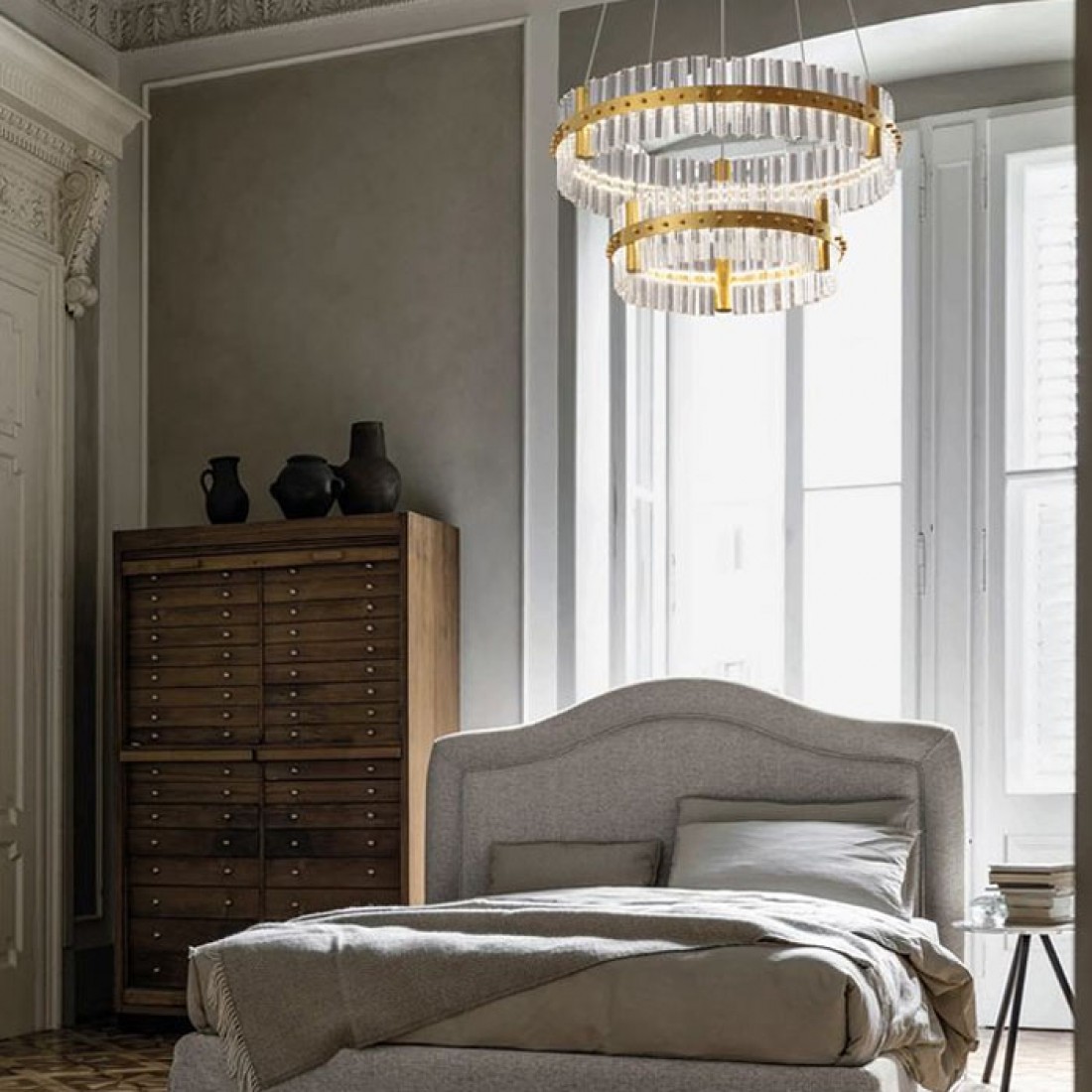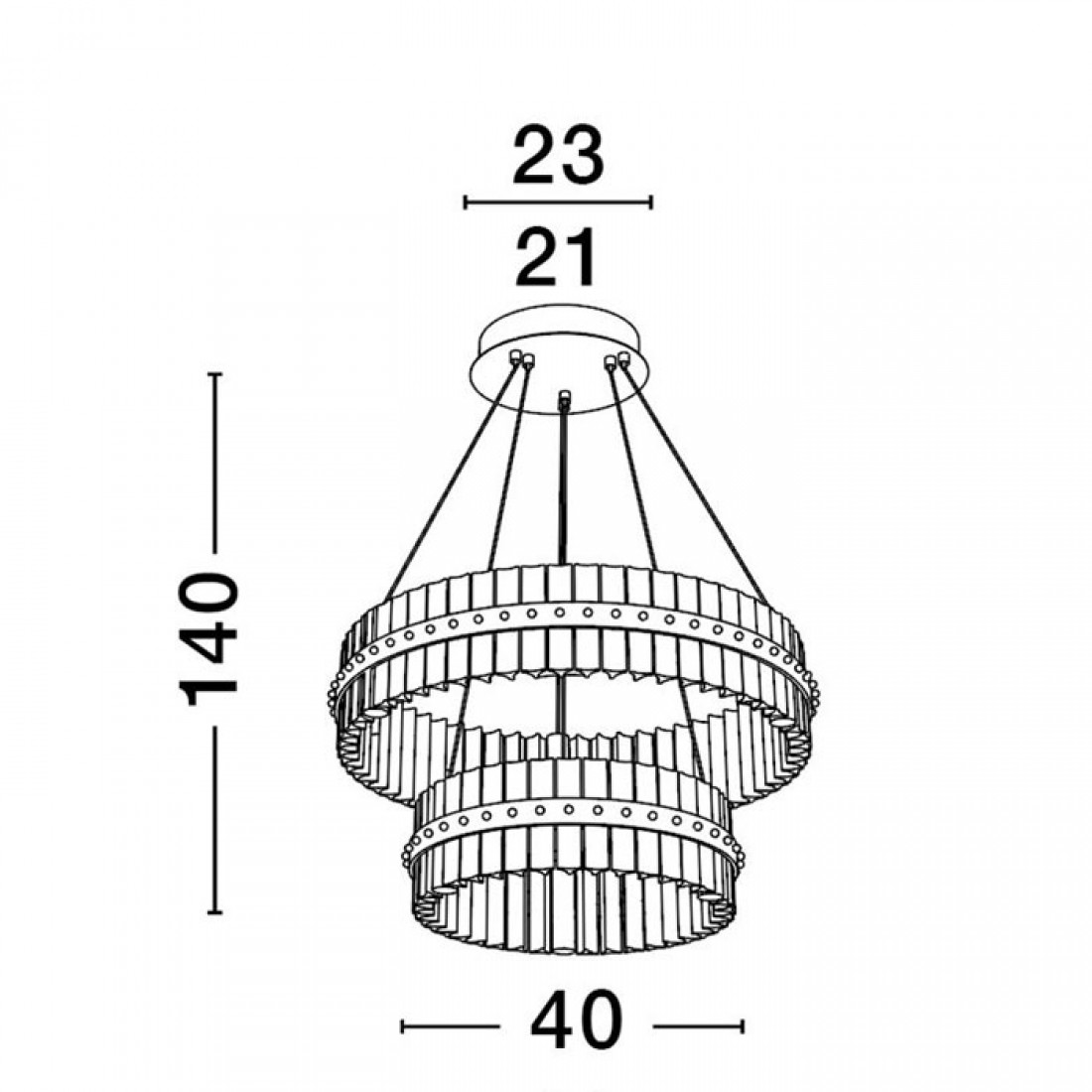 Suspensie moderna pentru interior, dimabila, cu structura din metal finisat auriu si dispersor din baghete de cristal K9.