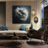 Fotografie imprimată, aplicată pe sticlă securizată. Sistem metalic de prindere pe perete inclus.