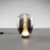 Veioză din aluminiu auriu anodizat, cu abajur din sticlă suflată, finisaj chihlimbar în degrade, și difuzor interior opal. LED de 8.5 W, 504 lm, 3000K.