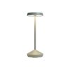 Veioză pentru exterior echipată cu LED-uri SMD, întrerupător touch (cu senzor de atingere) ON/OFF, touch dimmer de la 100% – 5% cu memorie a intensitații luminoase și posibilitate de schimbare a temperaturii de culoare a luminii de la 2700K la 3000K. Dotată cu baterie Li-ion tip 18650, capacitate 2.200mA x 2, cu protecție la supraîncarcare, priză de încărcare tip micro USB line și încărcător de contact (inclus) la 110 – 240V, 50/60Hz. Timp maxim de încărcare 6 ore, timp de funcționare (la încărcare maximă) 9 ore. Corp din aluminiu turnat sub presiune vopsit verde salvia mat, dispersor din policarbonat transparent.