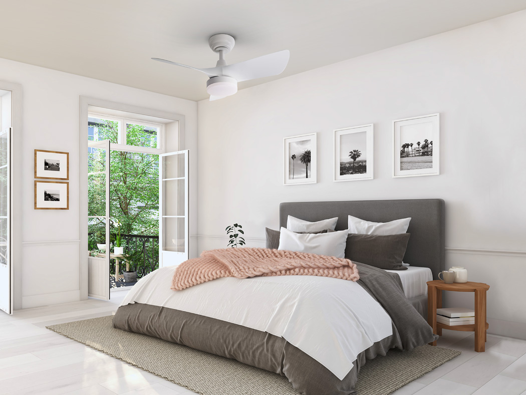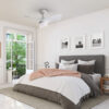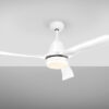 Ventilator de tavan cu lumină LED dimabilă și temperatură reglabilă a luminii (CCT). Realizat din metal cu pale din acril și finisaj alb mat. Difuzor opal din acril. Motor DC cu 6 viteze și funcție de inversare a sensului de rotație. Include timer, mod briză și funcție memorie. Telecomandă inclusă. LED de 22W, 1200 lm, temperaturi de culoare 3000-4000-5000 K. Disponibil și în versiune 110V.